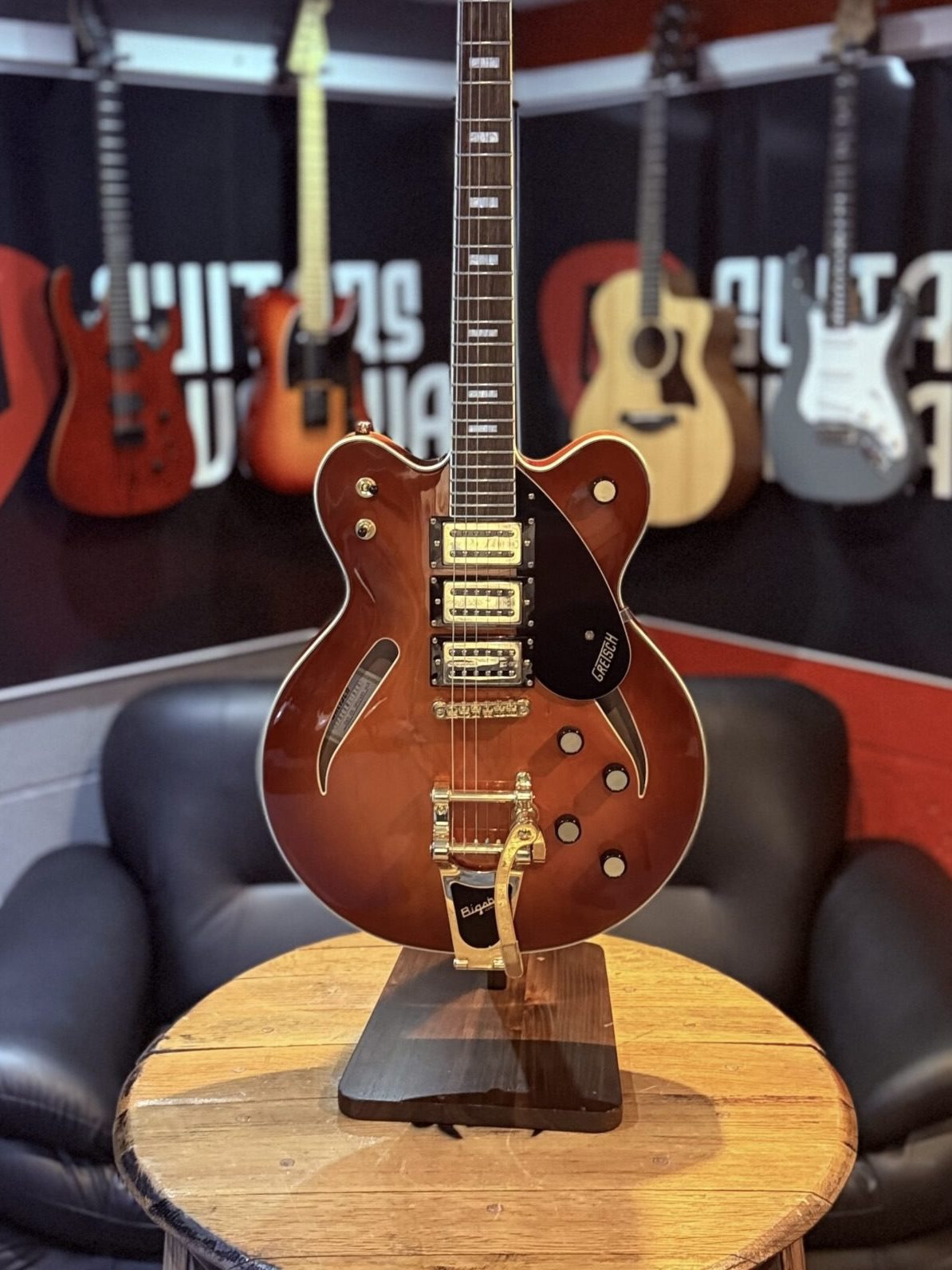 Evoking the spirit of rock ‘n’ roll’s golden era, the Gretsch Streamliner™ FSR Center Block Cat Eye with its Abbey Ale finish and cat-eye F-holes offers a visual nod to the past while standing out as a modern classic. The eye-catching design is not only aesthetically pleasing but contributes to its unique sonic character, making it a beloved choice for both collectors and performance artists seeking a guitar with a strong visual identity.