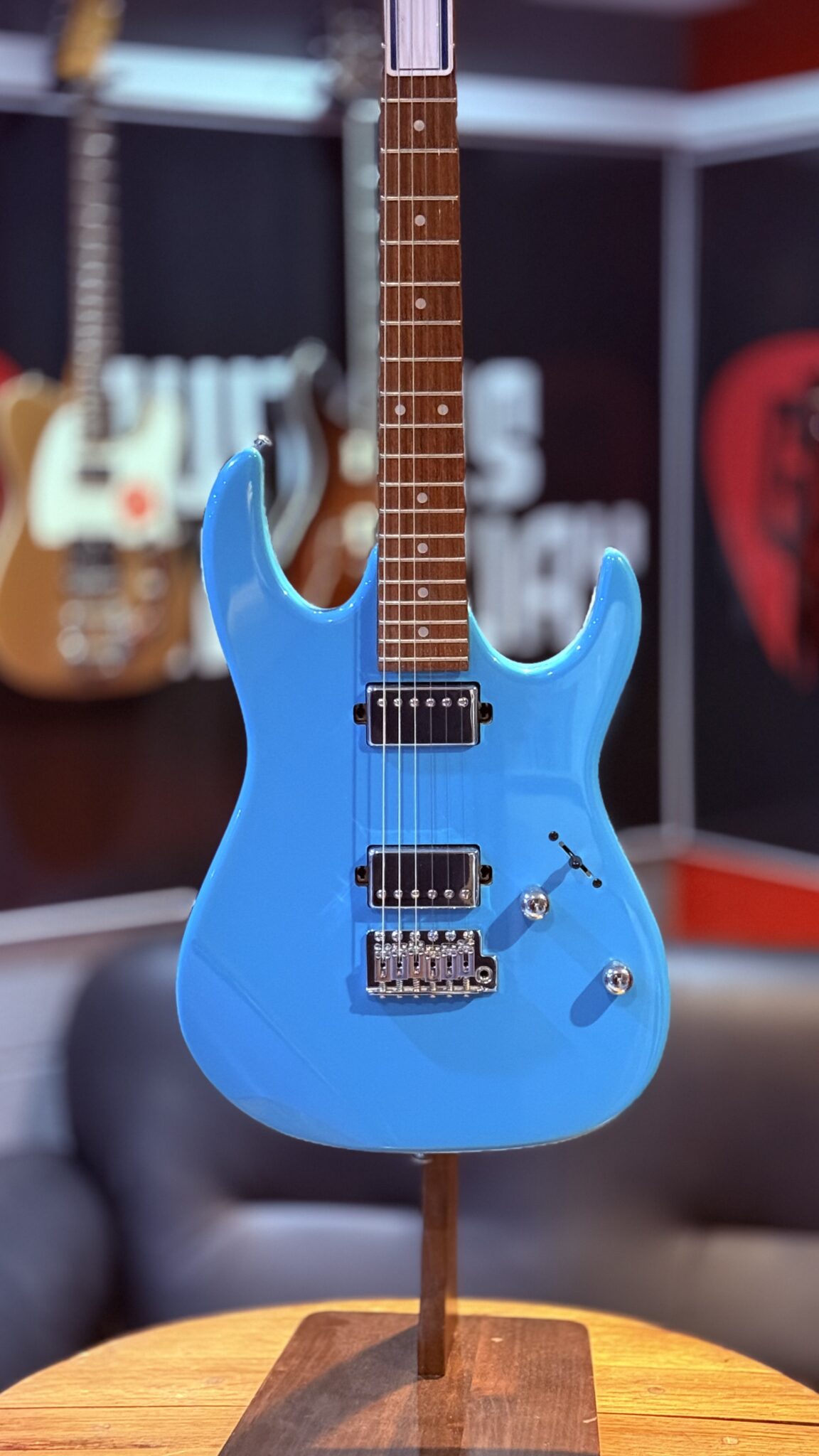 The Ibanez RG  Series is the perfect electric guitar for aspiring rockers and metal enthusiasts looking to make an impression without breaking the bank. With its stunning Pale Blue finish, this guitar not only stands out visually but also delivers on performance. The GRX neck shape is crafted for smooth, fast playability, catering to both rapid shredding and comfortable chord transitions, making it an excellent choice for players honing their skills.