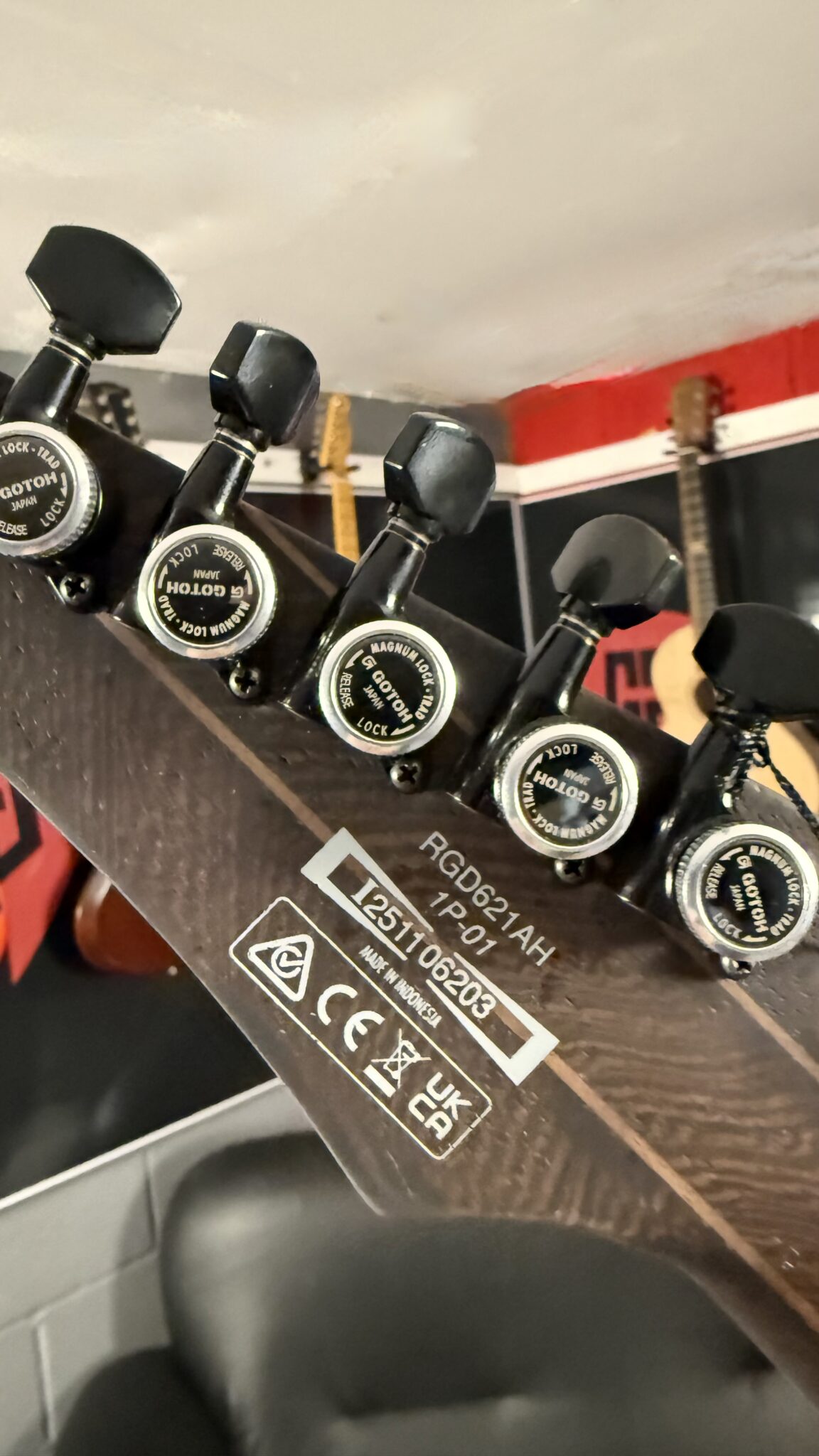 A Wizard III five piece Panga Panga and walnut neck delivers speed and sustain, paired with a Macassar ebony fretboard for attack and definition. DiMarzio Fusion Edge humbuckers provide a tight low end and crisp high response, supported by coil tap switching for added tonal range. Finished in a satin flat style, the RGD621AH is a focused instrument designed for precision, power and consistency in demanding modern setups.