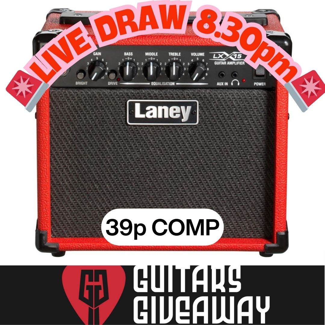 The live draw will take place on Guitars Giveaway Facebook page using Google’s random number generator to select the winning ticket number from all Entrants.