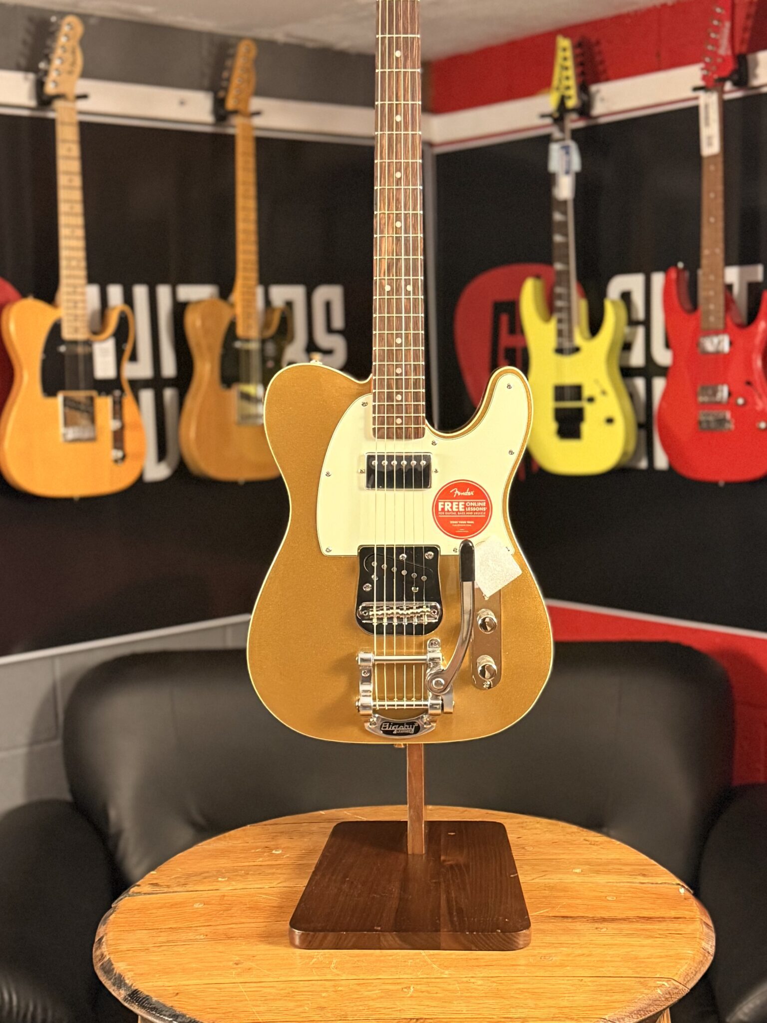 A Bigsby B50 vibrato tailpiece adds expressive flair and a classic feel, while the floating bridge with Mustang saddles ensures stable tuning and easy intonation adjustment. Finished with vintage-style tuners and period-correct headstock markings, this Tele blends retro charm with dependable performance for the stage, studio or home.