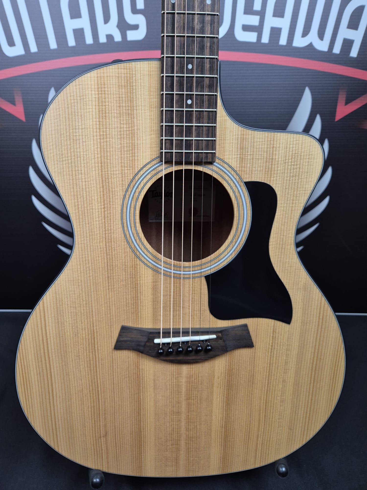 With exceptional playability, rich tone and all the features a player needs for everyday musical applications, the Taylor 114ce acoustic-electric guitar offers a great value for players of all skill levels. A top of solid torrefied spruce generates a clear, balanced midrange voice with plenty of projection for all purposes, whether you’re practicing at home or playing shows with other musicians. Our special roasting recipe adds a touch of warmth and sweetness that you’d expect from a more mature, played-in guitar, while a tone-boosting interior bracing design dials up the response with louder volume, longer sustain and greater low-end presence. And with the slender Taylor neck profile, you’re ensured easy, relaxed fretting no matter your playing style. It all adds up to a versatile experience with wide-ranging musical utility,