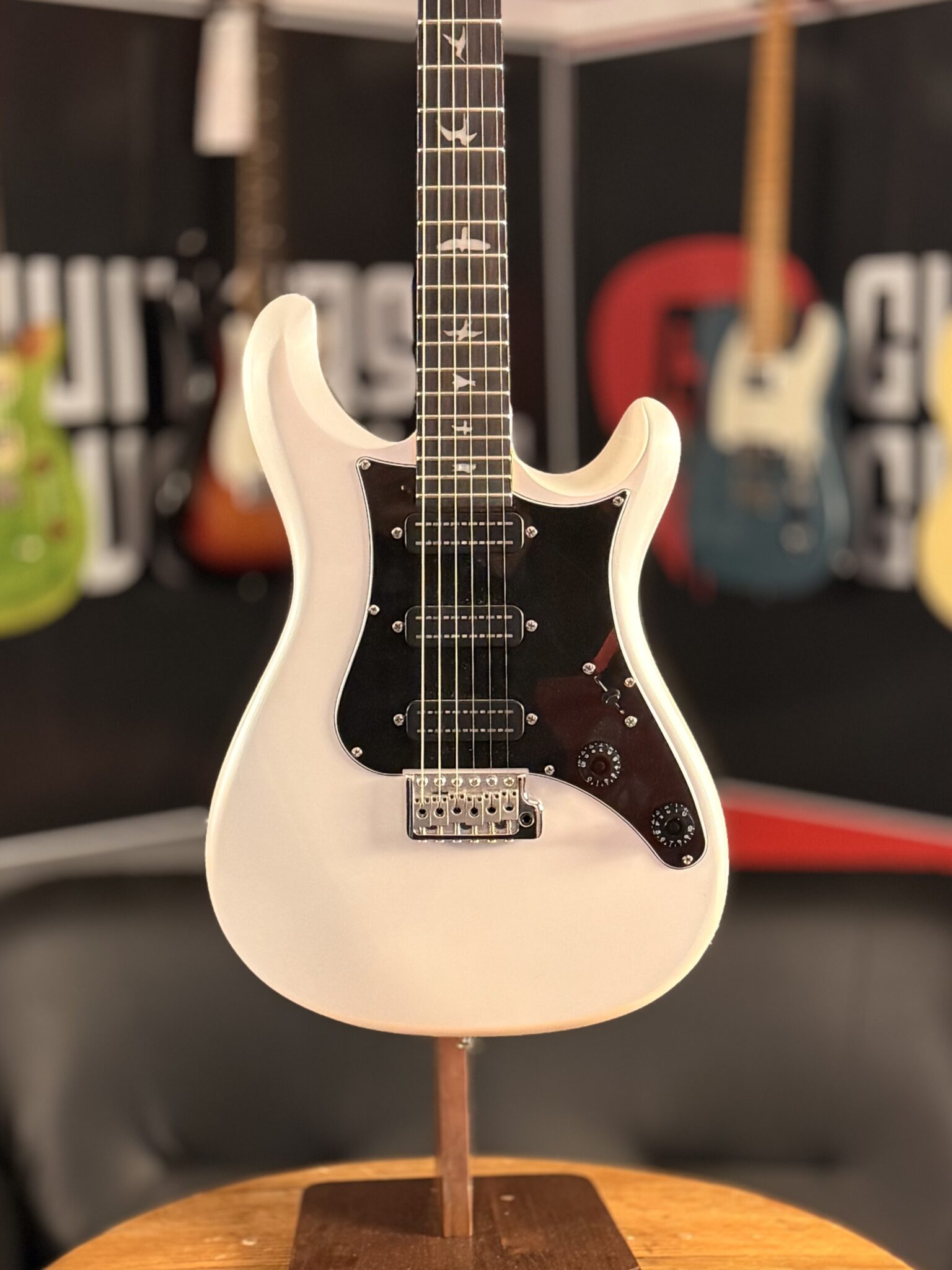 With a Poplar body, it offers a traditional and supremely comfortable playing experience, finished in Metallic White it looks super slick, you’re sure to stand out when playing this! Its well balanced and features the signature PRS lower horn scoop, allowing for great access up the neck.