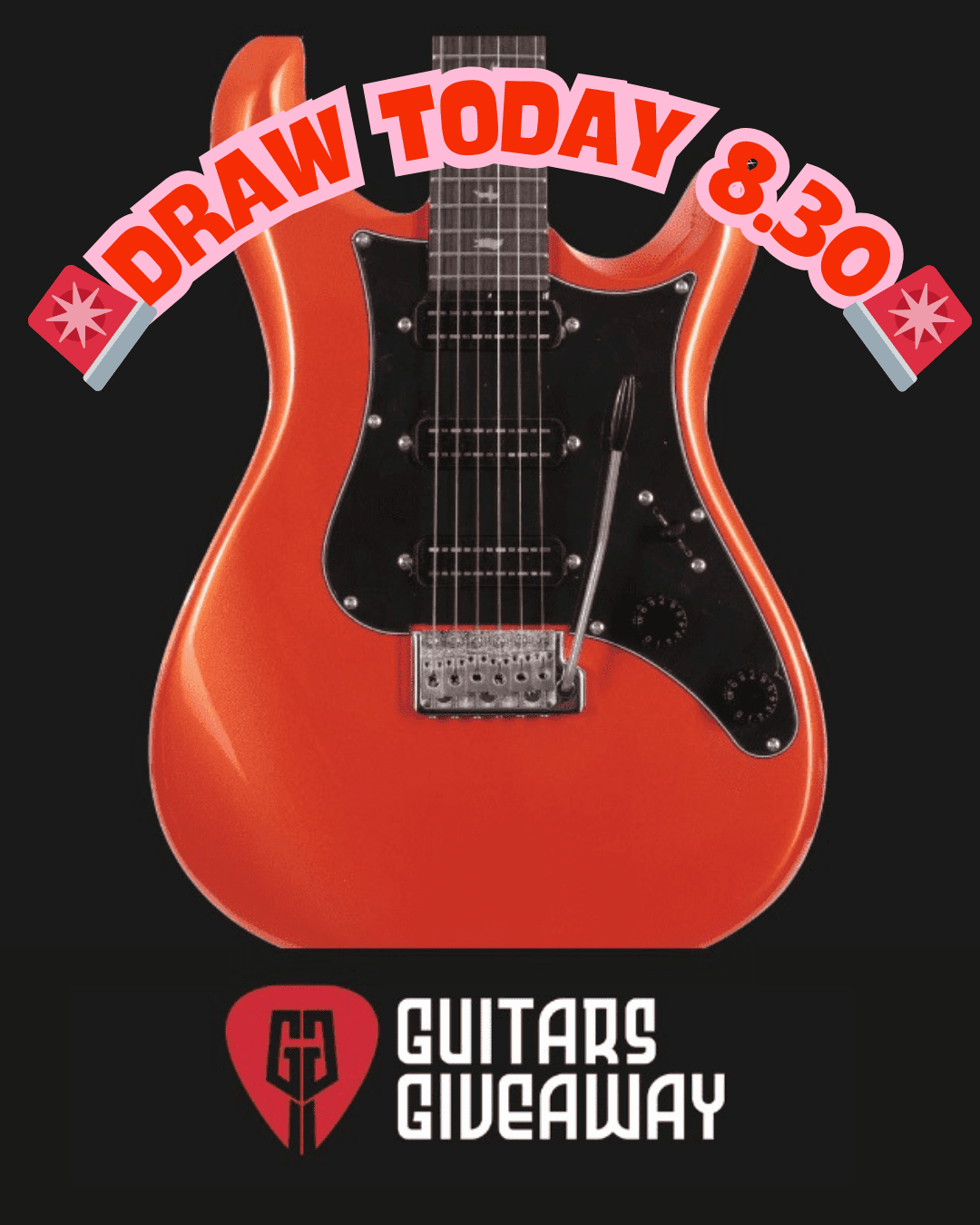 The live draw will take place on Guitars Giveaway Facebook page using Google’s random number generator to select the winning ticket number from all Entrants.